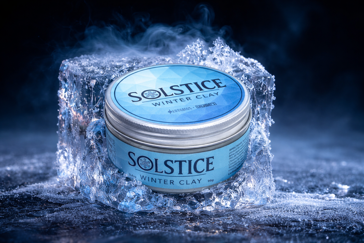 Solstice Winter Clay was built for the long season — the cold air, the dry air, the hats, the wind, the second-day texture. This is a firm-hold clay engineered for structure, grit, and lift when your hair needs to work harder.